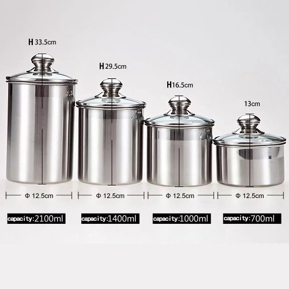 Creative home set of 4 pieces stainless steel canister container set with air tight lid and locking clamp, 26 oz, 36 oz, 47 oz, and 62 oz, black. Shop for stainless steel canisters at bed bath & beyond. Shop items you love at overstock, with free shipping on everything* and easy returns. See through acrylic lid with silicone gaskets and locking clamp to help preserve and stored food items. For best care hand wash with soapy water and wipe dry immediately after washing. 63.4 oz (1875 ml), 43 oz (1270 ml), 33.8 oz (1000 ml) 20.2 oz (600 ml). Stainless steel canisters set sugar coffee tea jar kitchen storage tin container. Shop brushed steel canister set from williams sonoma. Estilo 4 piece brushed stainless steel and glass canisters with window walmart usa. The canisters are made by kromex and feature a rectangular body, complete with lid. Oggi twist and store canister in acrylic stainless steel lid. Perfect for your countertop storage needs. Stainless steel coffee bean airtight storage container canister co2 valve 1.8l.